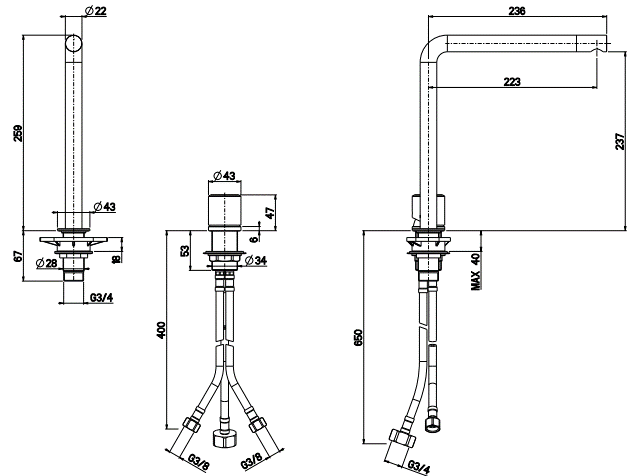 Wysokość wylewki: 23,7 cm
