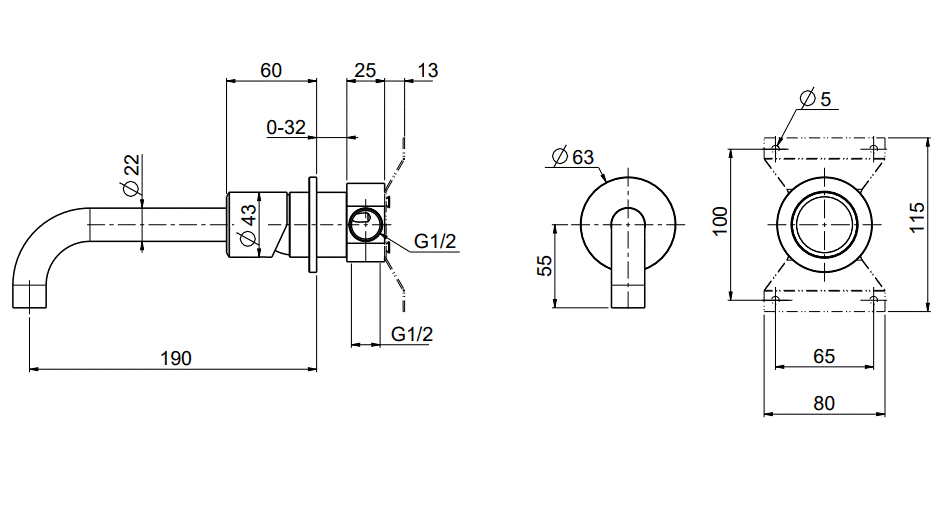QuadroDesign Stereo Bateria umywalkowa podtynkowa brushed stainless steel 1613T.00AS