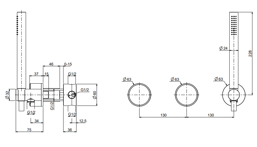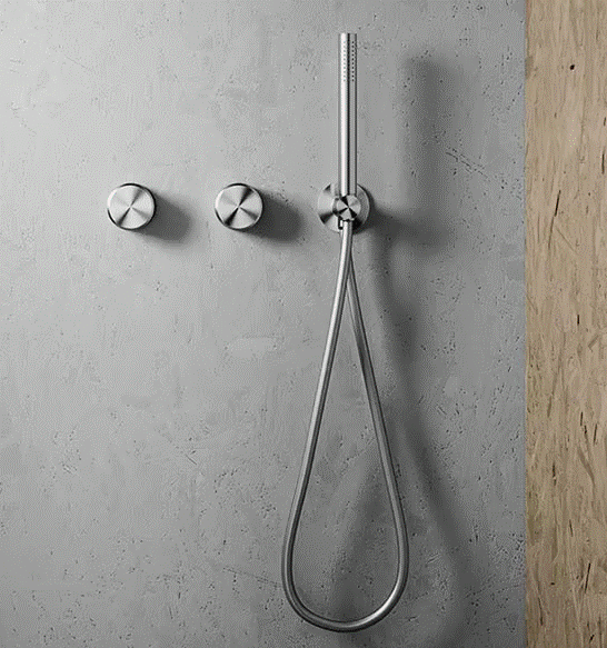 QuadroDesign Stereo Bateria prysznicowa podtynkowa ze słuchawką i wężem brushed stainless steel 1668AS