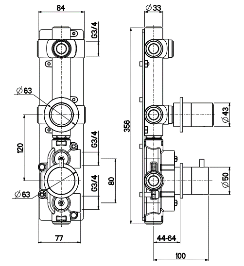 QuadroDesign Stereo Bateria prysznicowa termostatyczna podtynkowa z zaworem odcinającym brushed stainless steel 1648AS