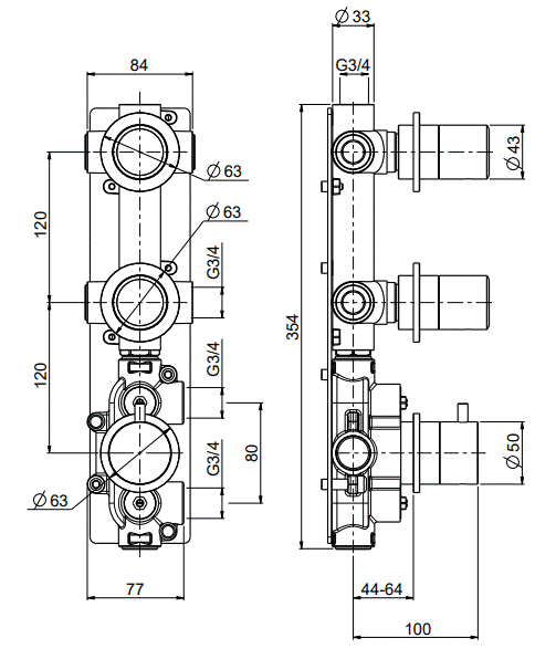 QuadroDesign Stereo Bateria prysznicowa termostatyczna podtynkowa z 2 zaworami odcinającymi brushed stainless steel 1649AS