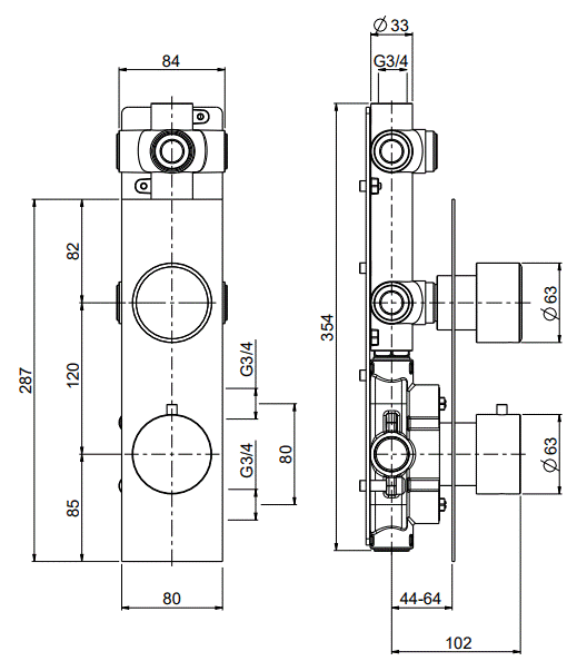 QuadroDesign Stereo Bateria prysznicowa termostatyczna podtynkowa z zaworem odcinającym brushed stainless steel 1688.0AS
