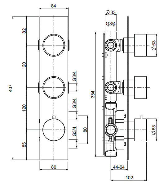 QuadroDesign Stereo Bateria prysznicowa termostatyczna podtynkowa z 2 zaworami odcinającymi brushed stainless steel 1689.0AS