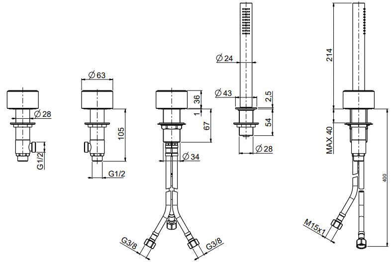 QuadroDesign Stereo Bateria wannowa na brzeg wanny 4-otworowa brushed stainless steel 1699AS