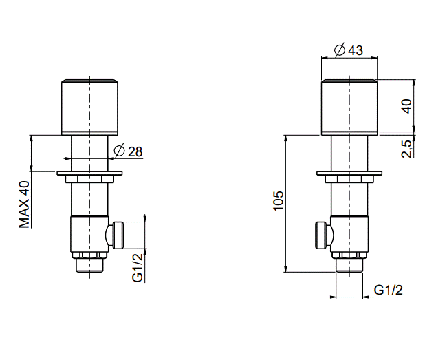 QuadroDesign Stereo Zawór odcinający (para) podtynkowy brushed stainless steel 1652VAS