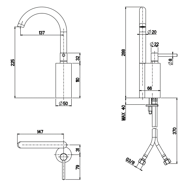 Wysokość wylewki: 22,5 cm