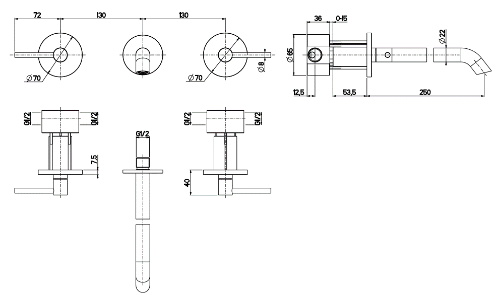 QuadroDesign FFQT Bateria umywalkowa podtynkowa brushed stainless steel 2111VAS