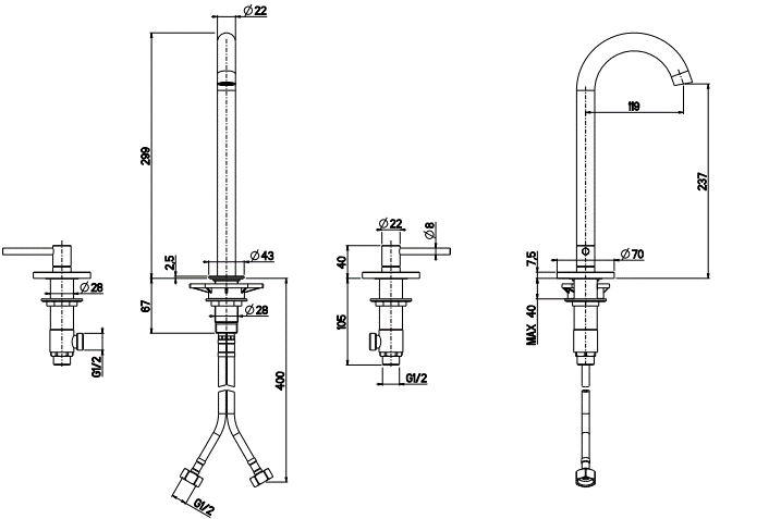 QuadroDesign FFQT Bateria umywalkowa brushed stainless steel 2132VAS