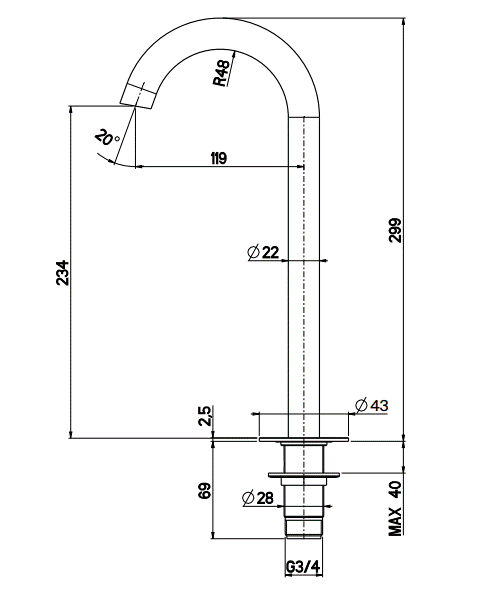 Wysokość wylewki: 23,4 cm