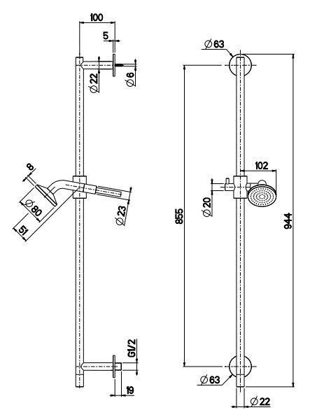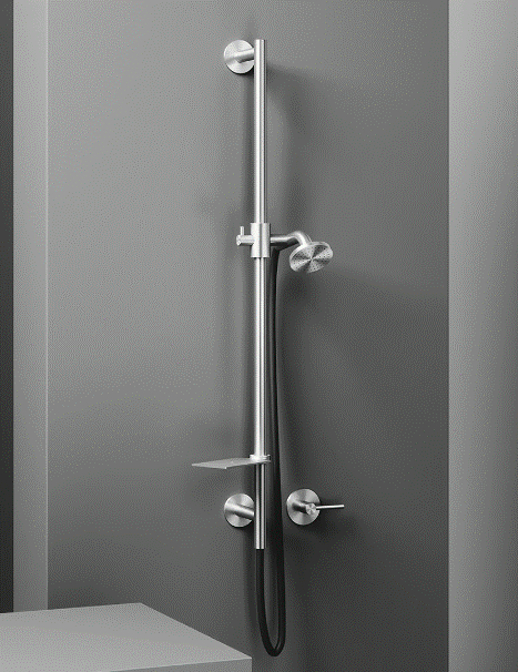 QuadroDesign FFQT Drążek prysznicowy ze słuchawką prysznicową, wężem i uchwytem brushed stainless steel TS21.00AS