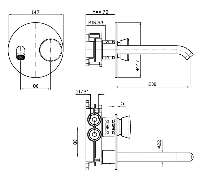 Zucchetti Sablier Bateria umywalkowa podtynkowa brushed stainless steel ZSL736.X