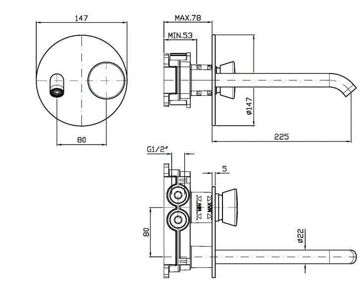 Zucchetti Sablier Bateria umywalkowa podtynkowa brushed stainless steel ZSL735.X