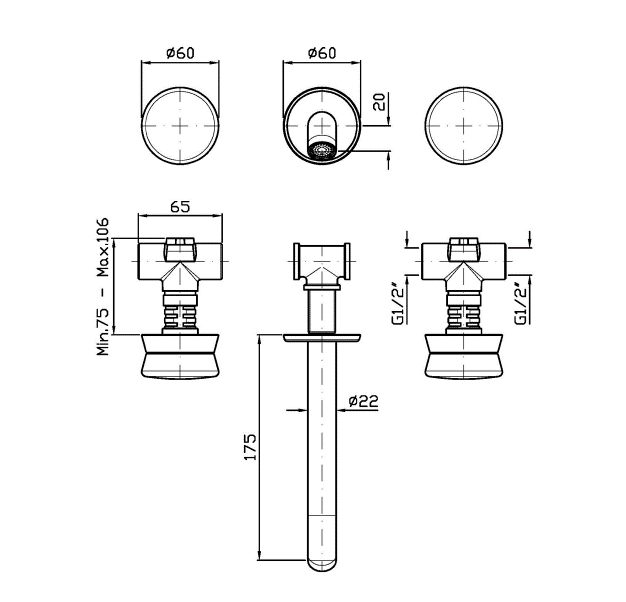 Zucchetti Sablier Bateria umywalkowa podtynkowa element zewnętrzny brushed stainless steel ZSL5782.X