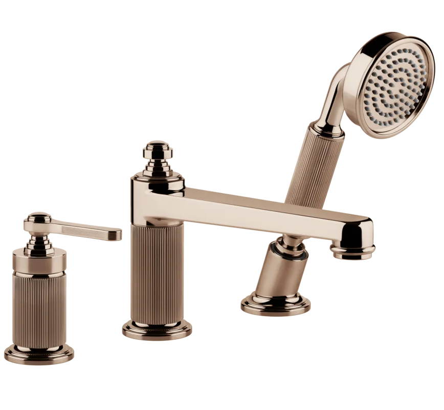 Gessi Venti20 Bateria wannowa 3-otworowa z przełącznikiem, wężem 1,5 m, słuchawką i wylewką copper pvd 65037.030