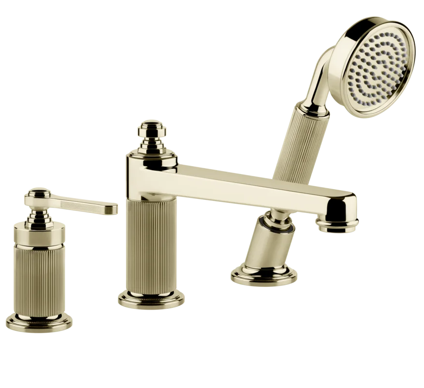 Gessi Venti20 Bateria wannowa 3-otworowa z przełącznikiem, wężem 1,5 m, słuchawką i wylewką brass pvd 65037.710