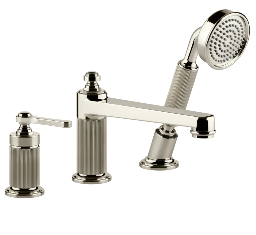 Gessi Venti20 Bateria wannowa 3-otworowa z przełącznikiem, wężem 1,5 m, słuchawką i wylewką nickel pvd 65037.720