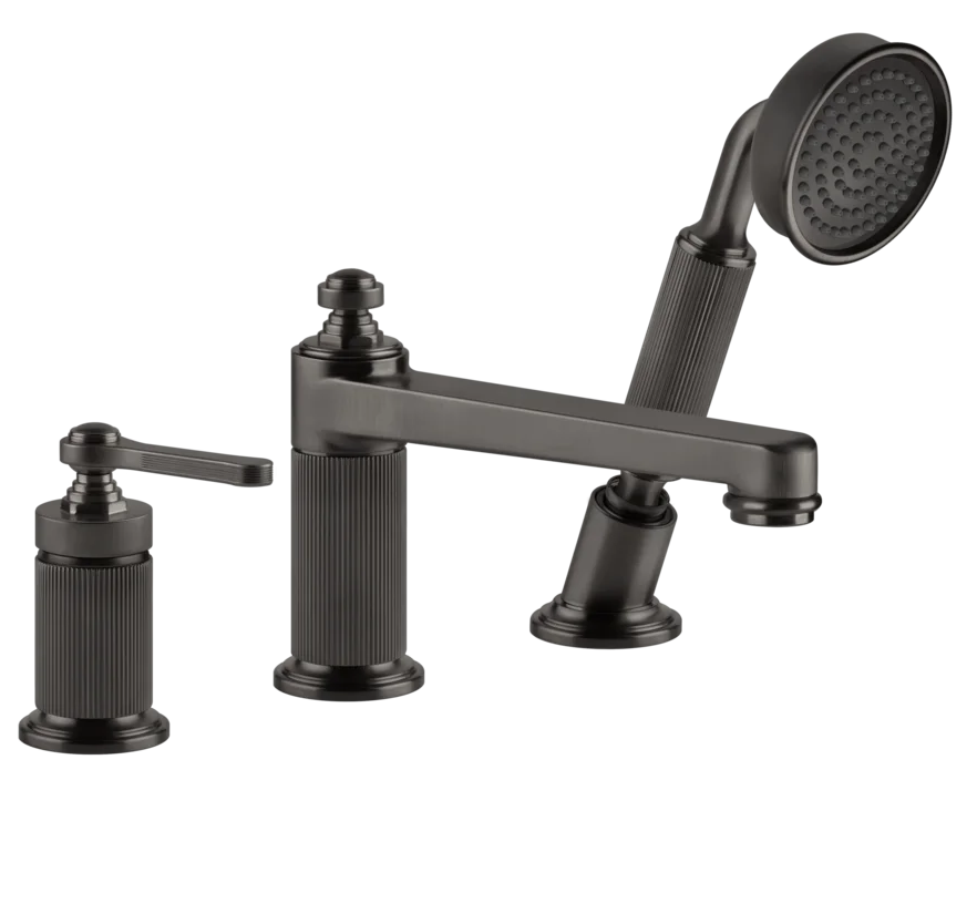 Gessi Venti20 Bateria wannowa 3-otworowa z przełącznikiem, wężem 1,5 m, słuchawką i wylewką black metal brushed pvd 65037.707