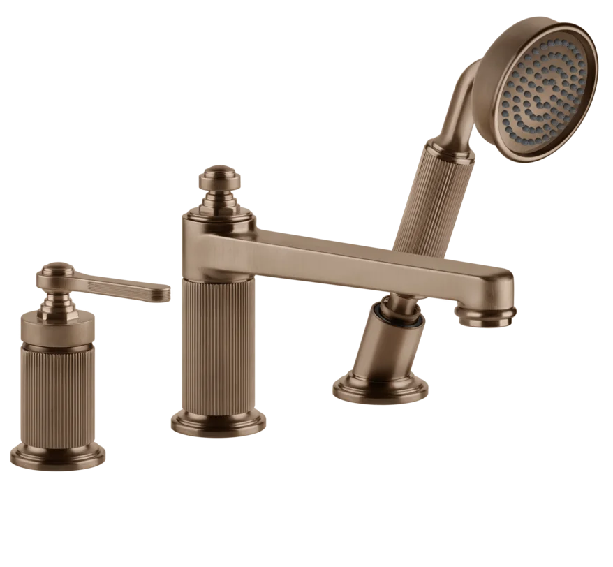 Gessi Venti20 Bateria wannowa 3-otworowa z przełącznikiem, wężem 1,5 m, słuchawką i wylewką copper brushed pvd 65037.708