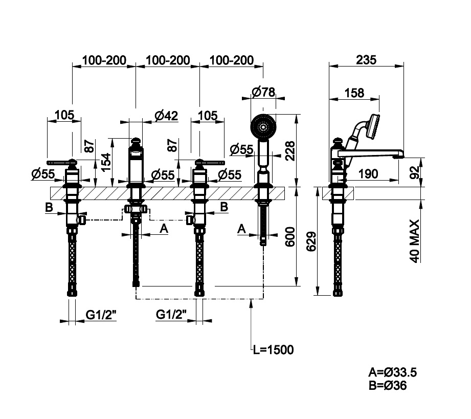 Cena dotyczy baterii wannowej ze słuchawką i wężem