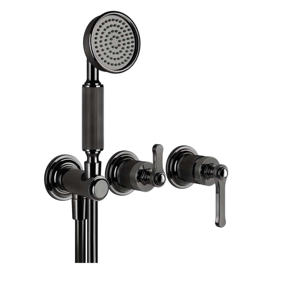 Gessi Venti20 Bateria natryskowa ścienna z przełącznikiem 2-drożnym, słuchawką i wężem element zewnętrzny black metal pvd 65036.706