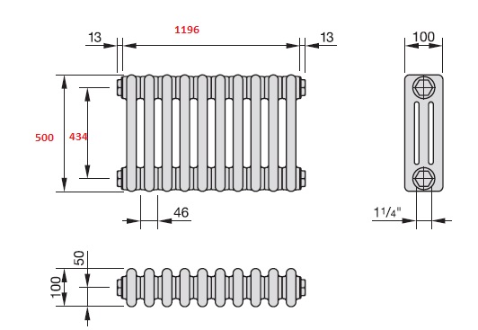 Zehnder Charleston 3050 Grzejnik dekoracyjny 119,6x50 26-elementów biały RAL9016 30502676109016