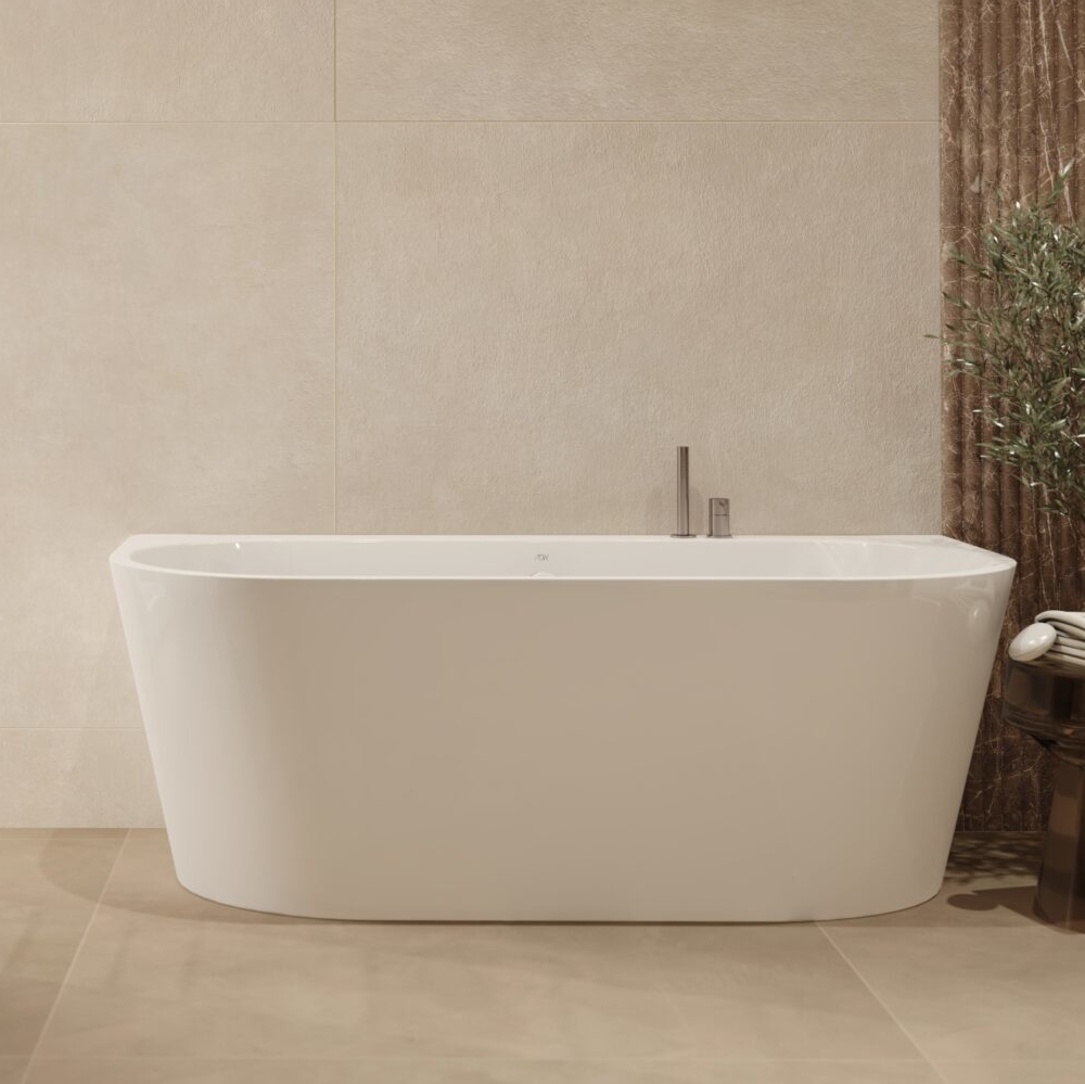 - Szeroki rant przyścienny – zaprojektowany tak, by pełnić funkcję praktycznej półki na kosmetyki, akcesoria do kąpieli czy świeczki, które stworzą wyjątkowy klimat domowego SPA.