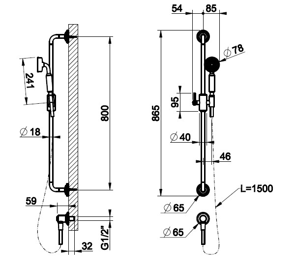 Gessi Venti20 Drążek prysznicowy ze słuchawką,wężem 150 cm i przyłączem wody warm bronze pvd 65142.735