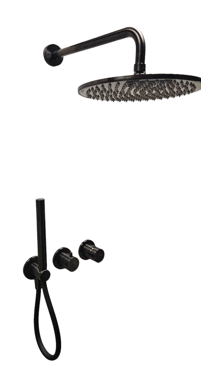 Bruma Leaf2 Bateria natryskowa podtynkowy z deszczownicą Ø25 i zestawem natryskowym Gunmetal 1673616GM