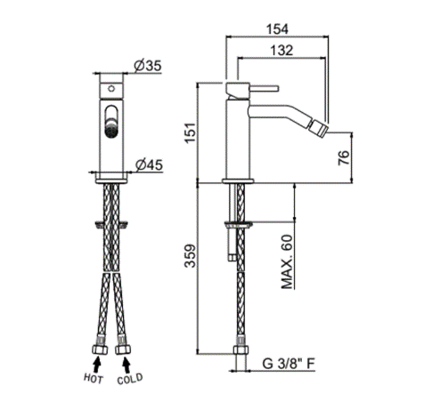 Vema Otago Bateria bidetowa bez korka brushed gold V32071.AP.098