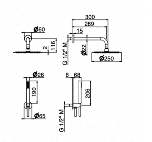 Vema Otago Zestaw deszczownica, ramię, przyłącze, wąż, słuchawka brushed gold V08135.AP.098