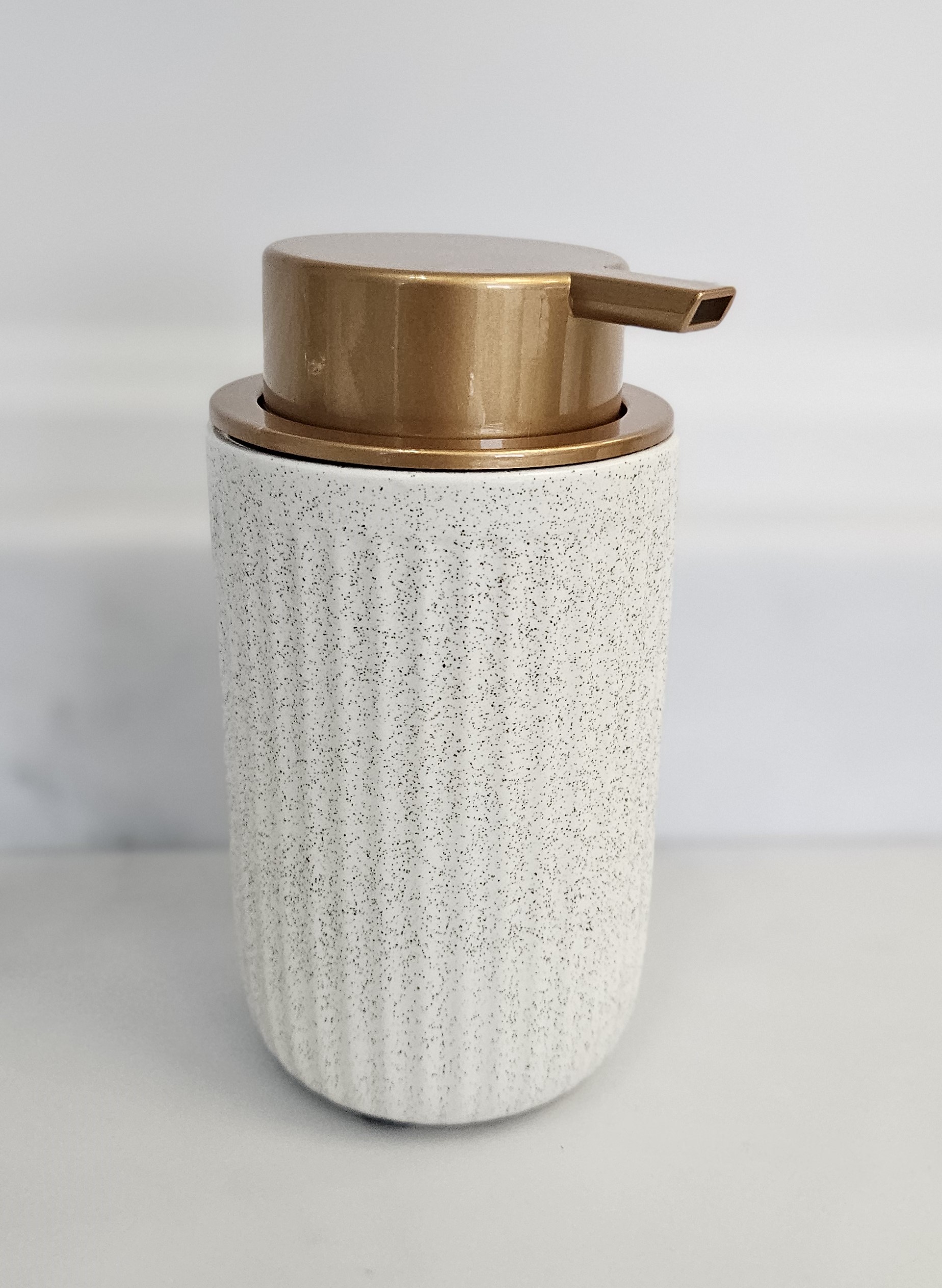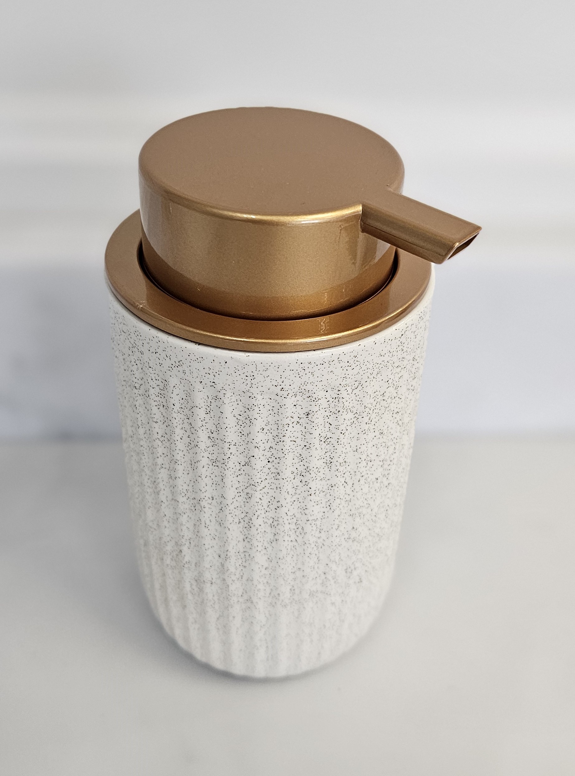 Galatea Design Dozownik do mydła stojący biały/złoto szczotkowane GDDOZWHBRG