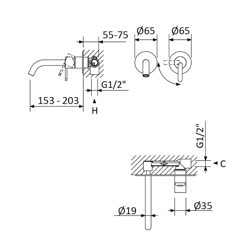 Bruma X-Alpha Bateria umywalkowa podtynkowa 200 mm 2-otworowa bez korka Satin stainless steel 1860104IS
