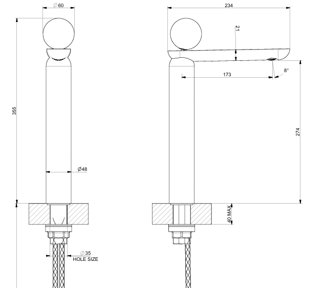 Wysokość wylewki: 27,4 cm