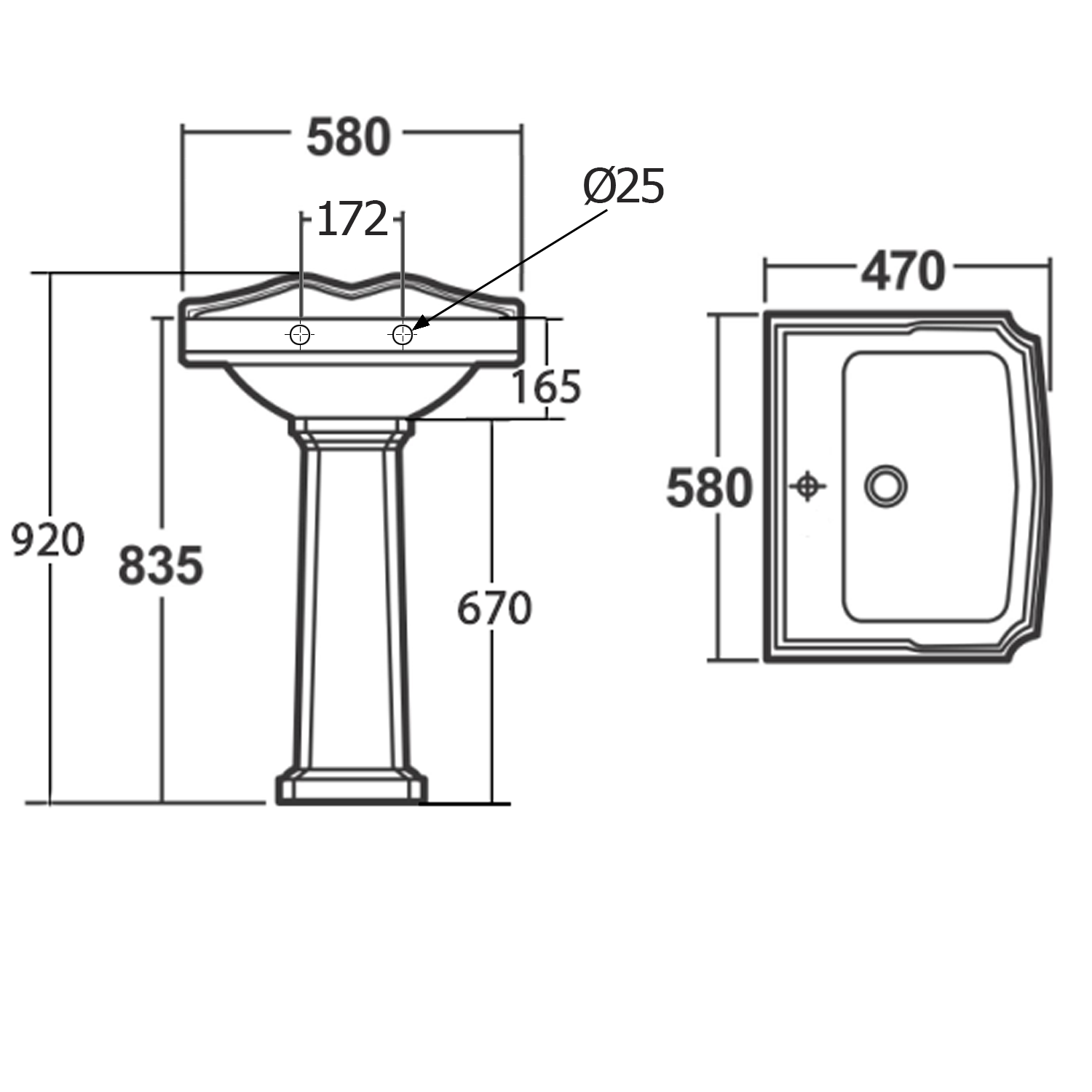 Aqualine Antik Umywalka 58x47 biały połysk AK102