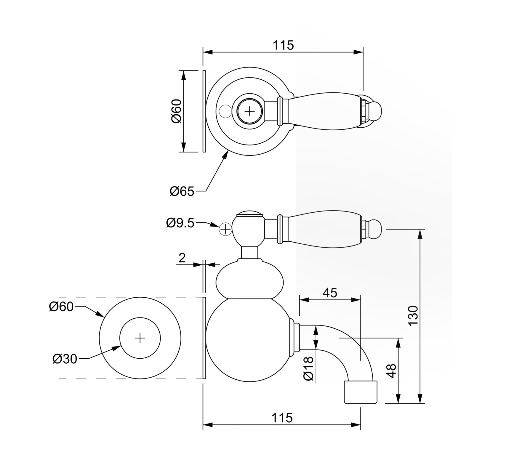 Bleu Provence Bateria umywalkowa ścienna chrom RLA1022.1