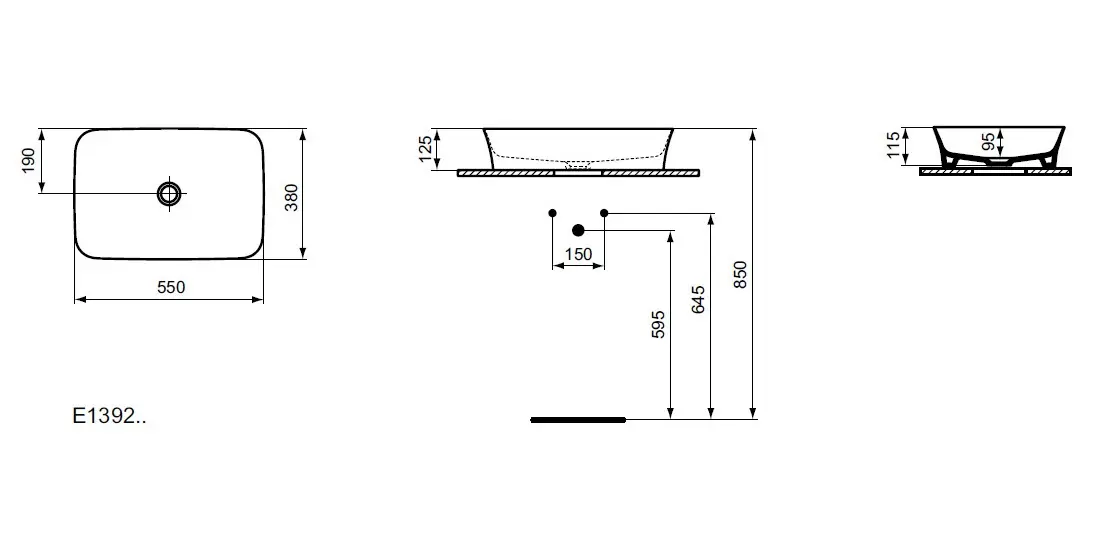 Ideal Standard Ipalyss Umywalka nablatowa 550x380 mm bez przelewu Biały E139201 WYPRZEDAŻ MAGAZYNOWA!!