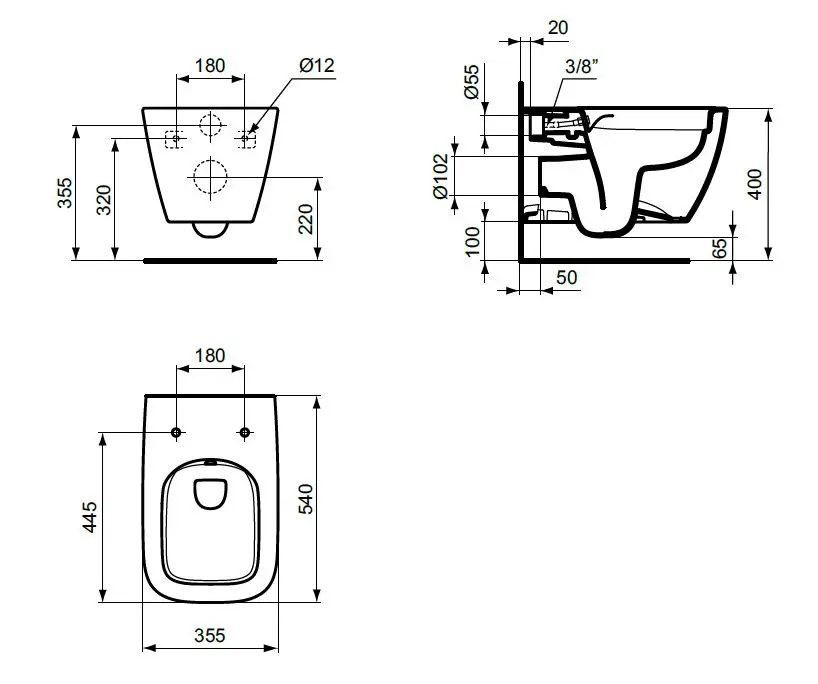 Ideal Standard i.Life B miska wisząca 54 RimLS+ biała + deska wolnoopadająca cienka biała T500301 + T534701