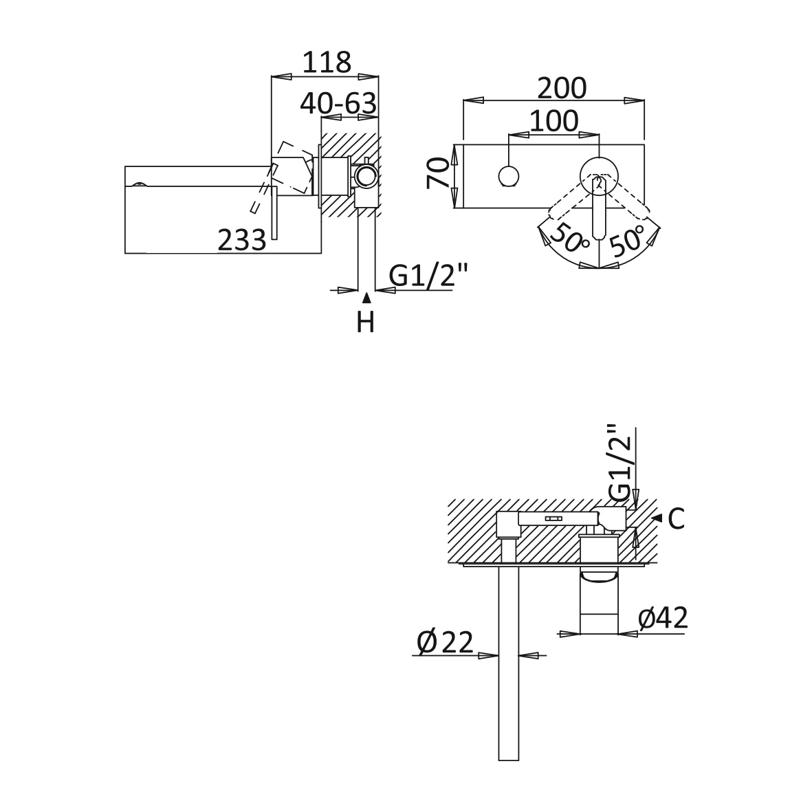 Głębokość montażu: 40 – 63 mm