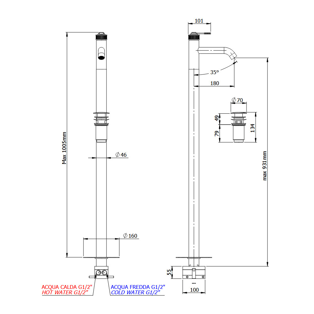 Remer Atelier Bateria umywalkowa wolnostojąca jednouchwytowa z korkiem automatycznym Chrom AL18