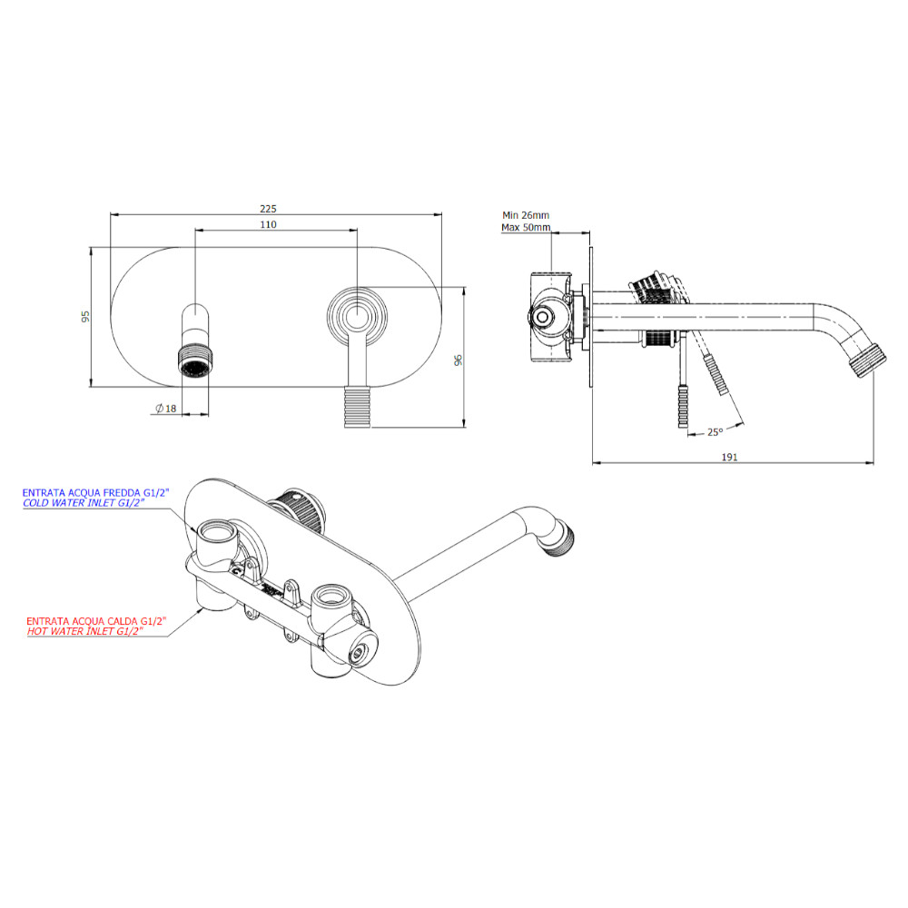 Remer Atelier Bateria umywalkowa podtynkowa jednouchwytowa 190 mm Chrom AL15L