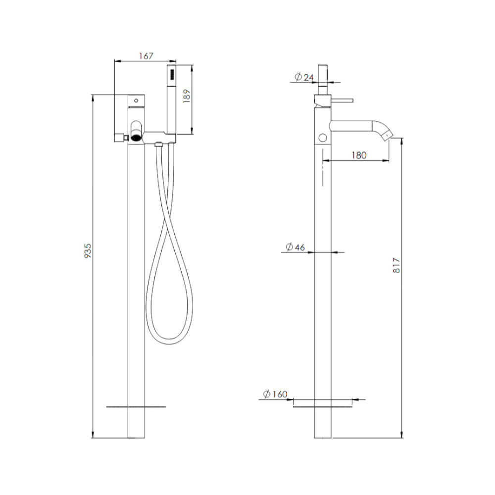 Remer X Style Inox Bateria wannowa wolnostojąca z zestawem natryskowym - element zewnętrzny Inox SSX08
