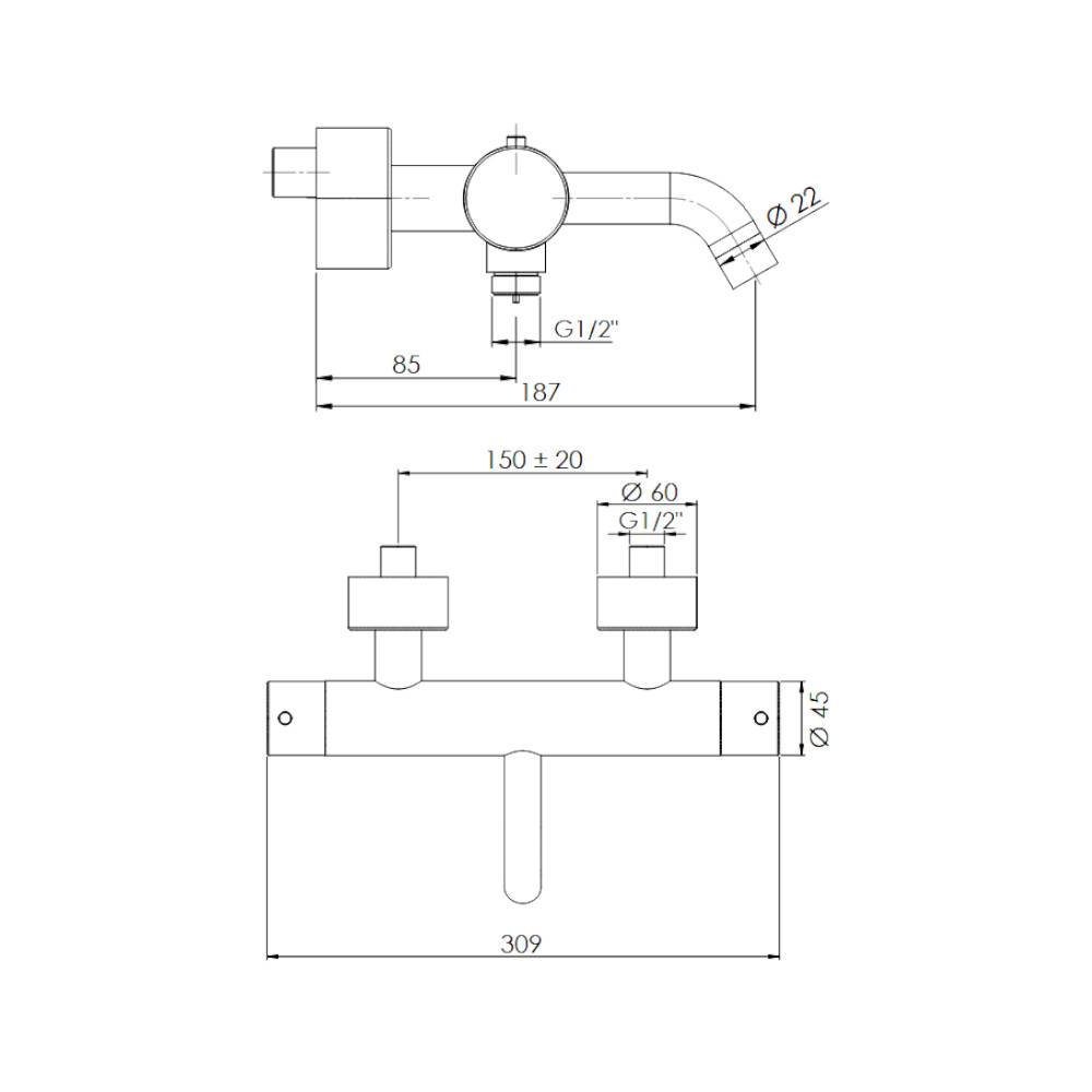 Remer X Style Inox Bateria wannowa termostatyczna bez zestawu natryskowego ścienna Inox SSXT05