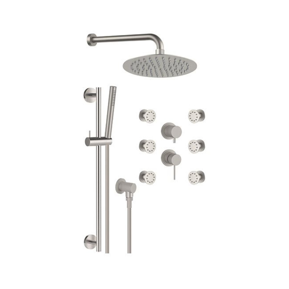 Remer X Style Inox Zestaw natryskowy termostatyczny z deszczownicą Ø 300 mm, z przyłączem oraz uchwytem na drążku i 6 dyszami Inox SSX93PS01UFM30