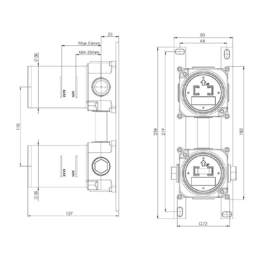 Puszka podtynkowa pozioma do baterii wannowo-natryskowej