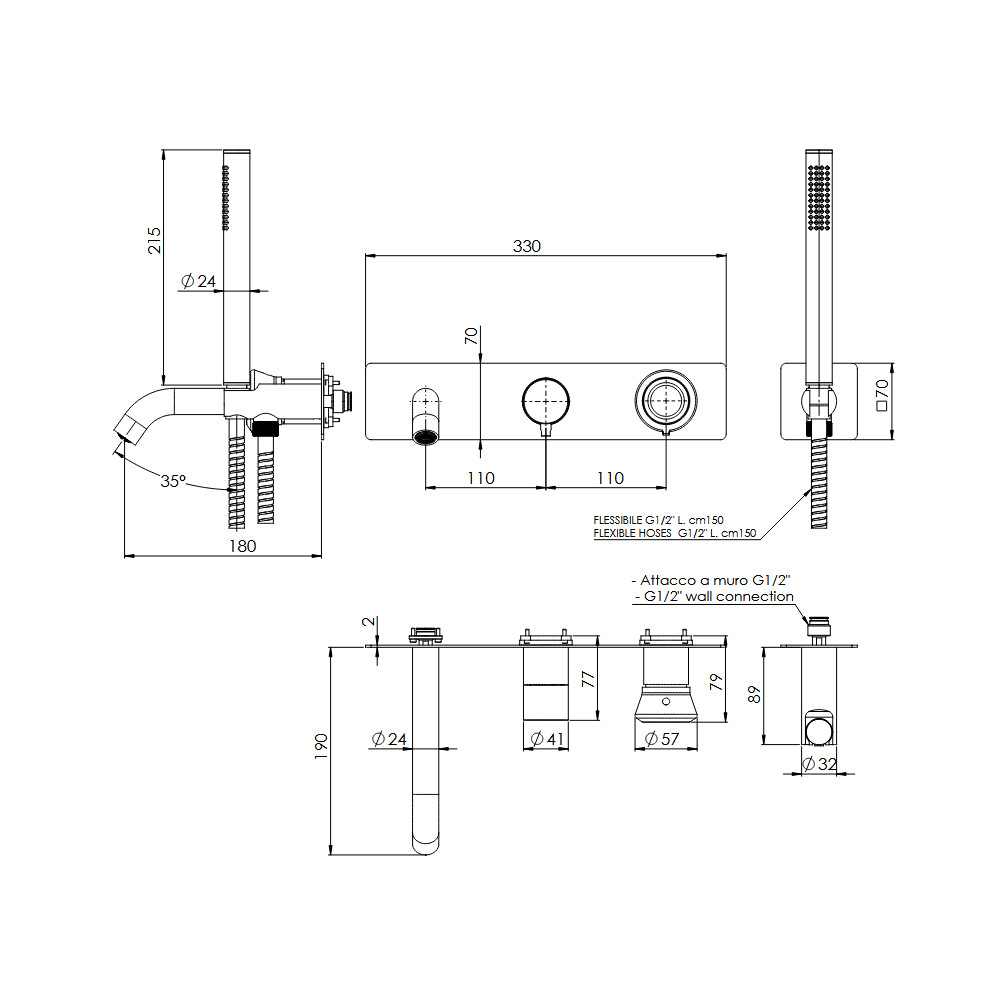 Remer Element Bateria wannowo-natryskowa podtynkowa z zestawem natryskowym 2-drożna - element zewnętrzny Chrom ET53D2WB