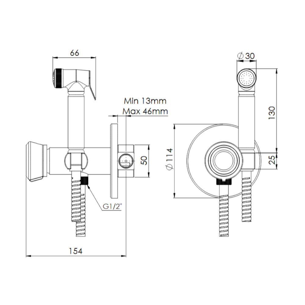 z odcięciem i elastycznym wężem o długości 120 cm,