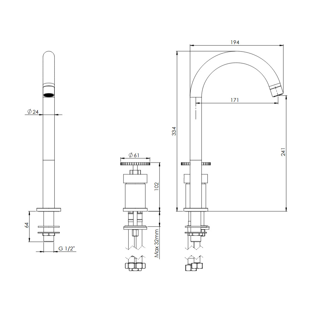Remer Chrono Bateria umywalkowa 2-otworowa jednouchwytowa wysoka bez korka Chrom CH57L