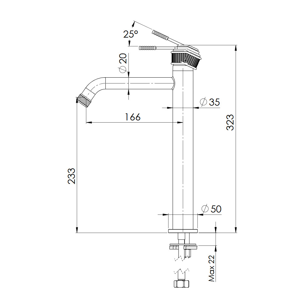 Remer Atelier Bateria umywalkowa wysoka jednouchwytowa bez korka Brushed Gold AL11LXLBG