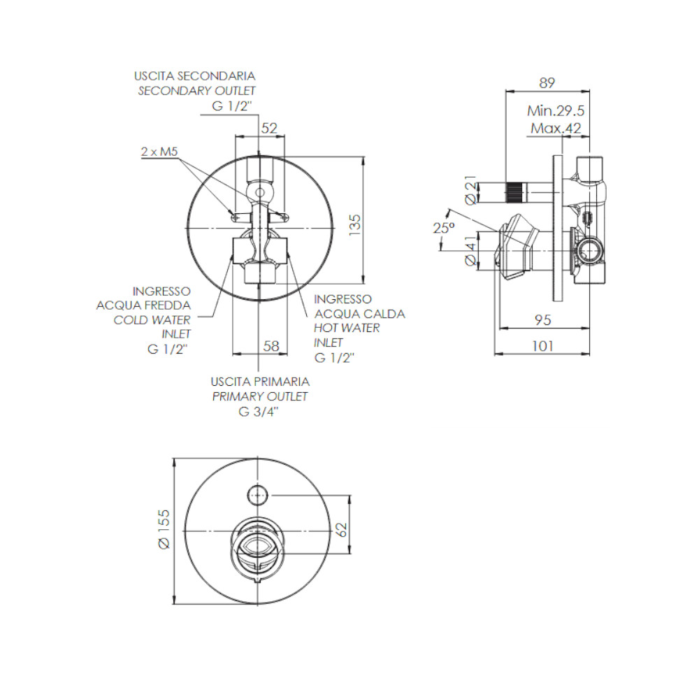 Remer Element Bateria wannowo-natryskowa podtynkowa 2-drożna - element zewnętrzny Matt Black ET09HLNO