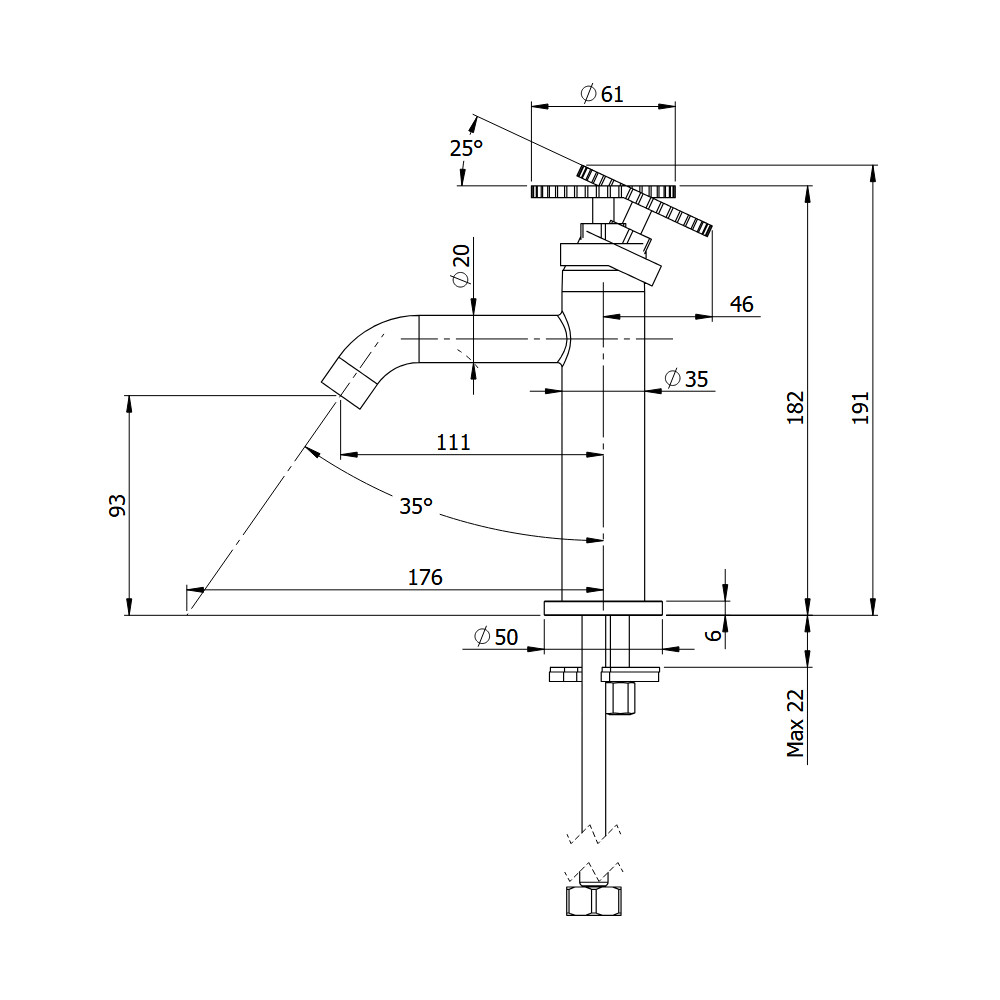 Remer Chrono Bateria umywalkowa jednouchwytowa bez korka Brushed Gold CH12BG